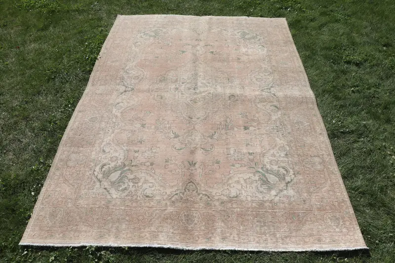 Orange Moroccan Rug, 6.4x9.4 ft Vibrant Green Accents