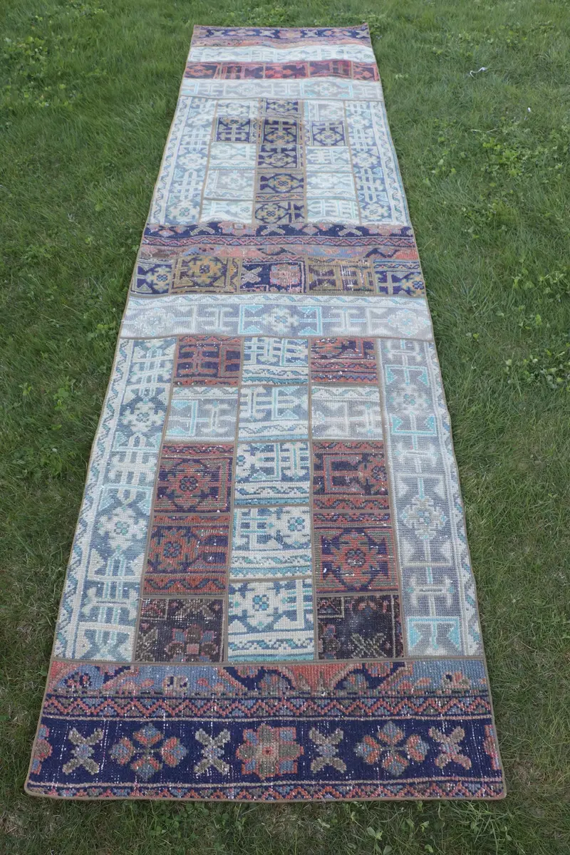 Elegant Beige & Purple Rug, 3x11.6 ft Ikat Design