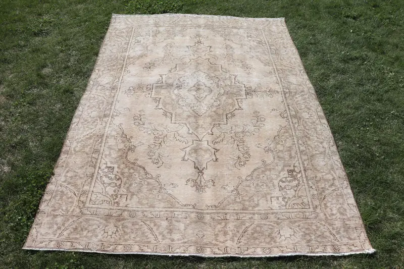 Elegant Beige & Brown Rug, 6,3x9,4 ft Botanical Design