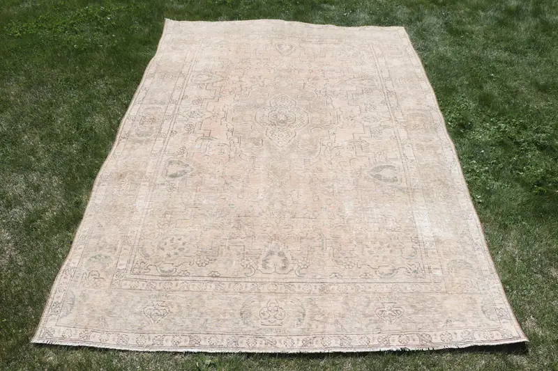 Brown, Green Abstract Rug, 6,5x9,3 ft Chic Addition