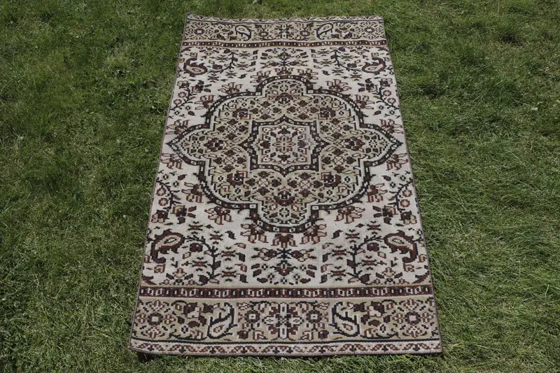 Elegant Beige & Brown Rug, 2.6x4.4 ft Botanical Design