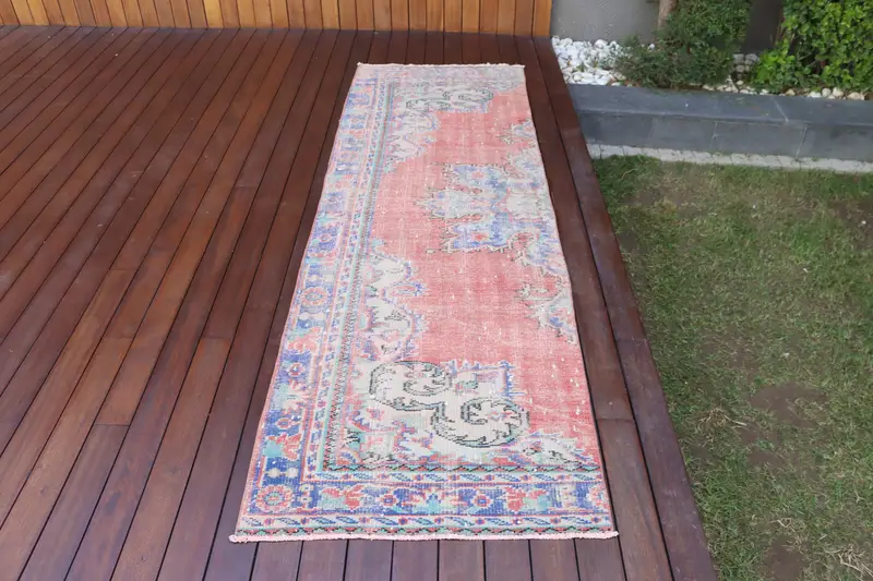 Red & Blue Rug, 2.6x8.2 ft Solid Pattern