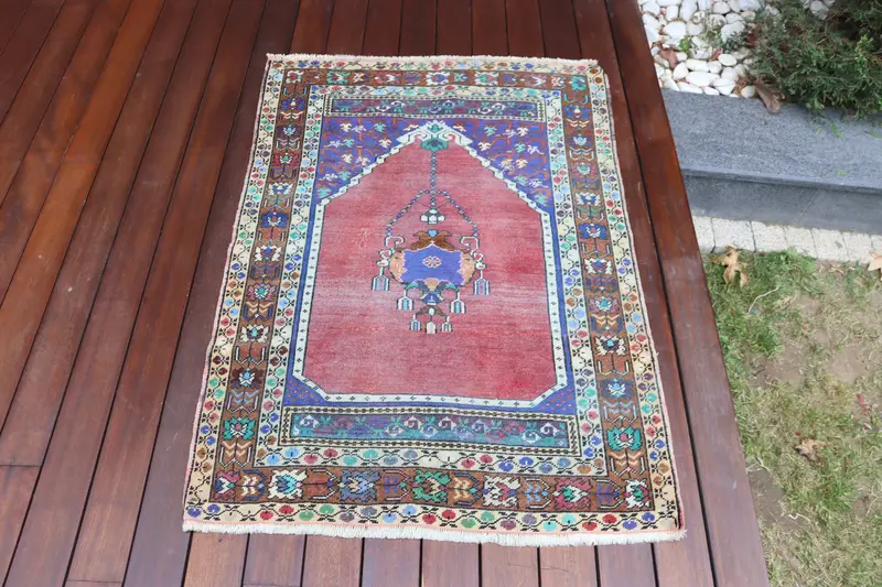 Red and Blue Animal Print Rug, 2,7x3,8 ft