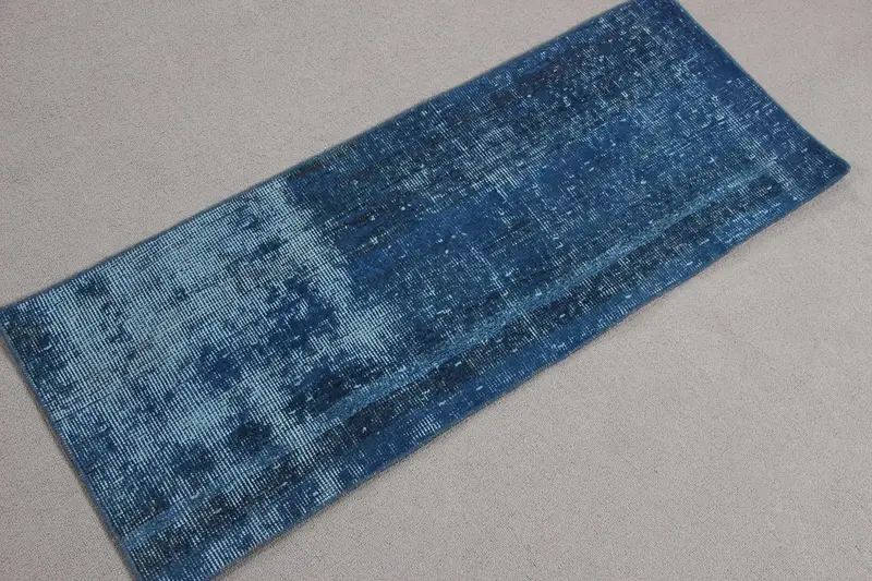 Blue Southwestern Rug, 1,4x3,8 ft with Green Accents