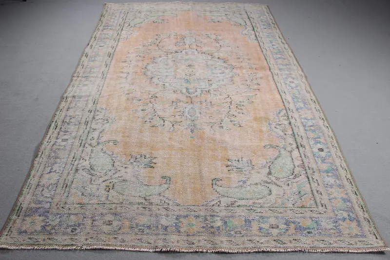 Yellow Rug with Blue Border, 5.7x9.5 ft