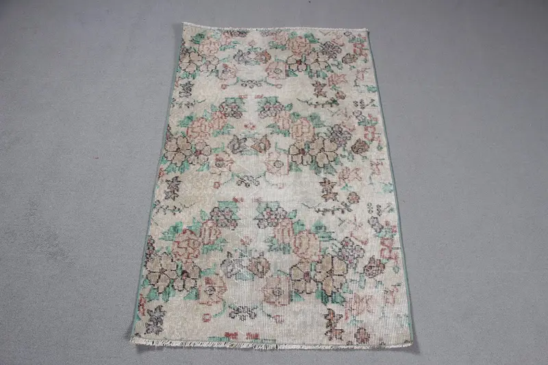 Elegant Beige & Green Rug, 2,4x3,9 ft Abstract Design