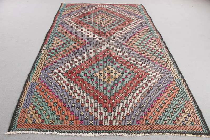 Red Persian Rug, 5.7x9.5 ft with Green Accents