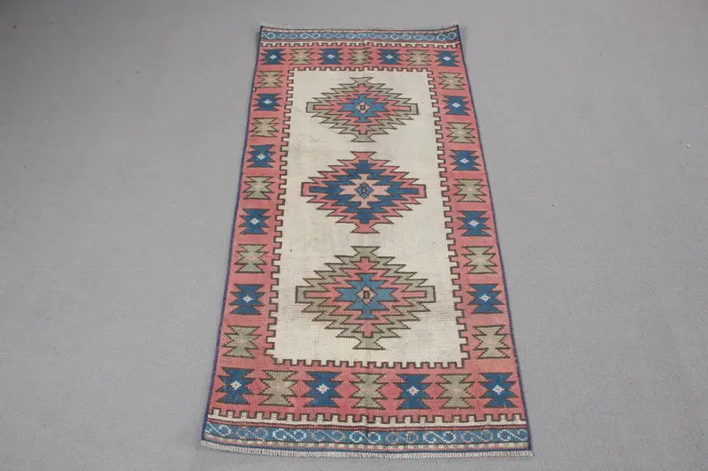 Elegant Beige & Pink Rug, 2.2x4.5 ft Abstract Design