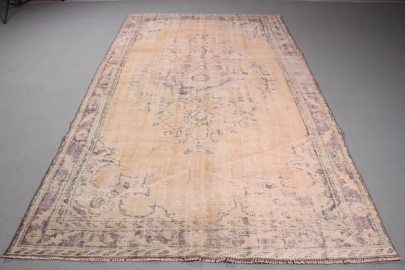 Orange & Purple Rug, 5.6x9.6 ft Striped with Geometric Shapes