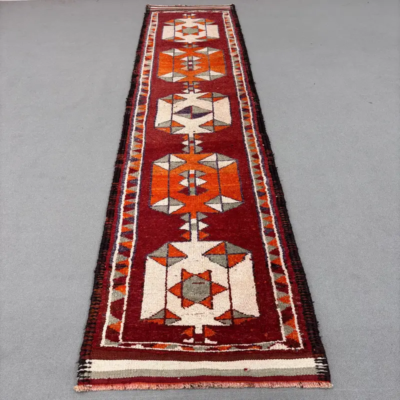 Purple Ikat Rug, 2,8x11,9 ft Vibrant Decor