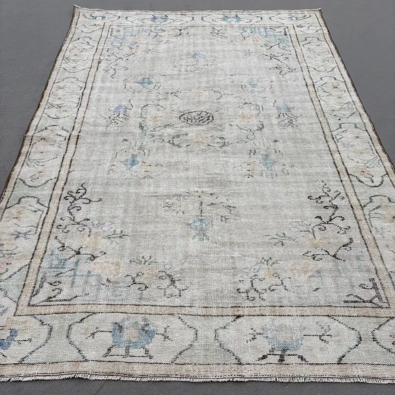 Elegant Beige & Green Rug, 6.5x9.4 ft Botanical Design