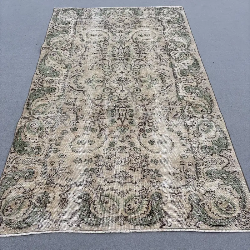 Elegant Beige & Green Rug, 5,1x8,7 ft Botanical Design