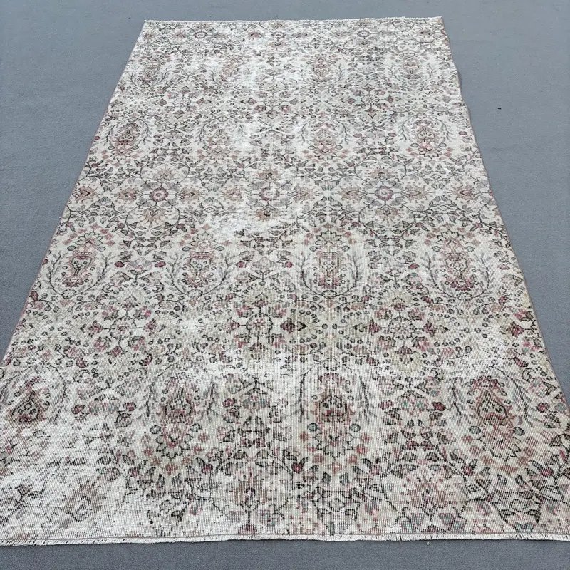 Elegant Beige Rug, 5,2x8,9 ft with Pink Accents