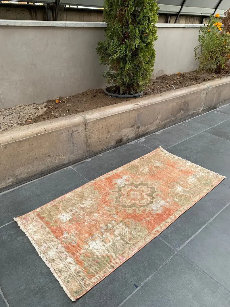 Orange Beige Floral Rug, 1.8x3.6 ft Chic Decor
