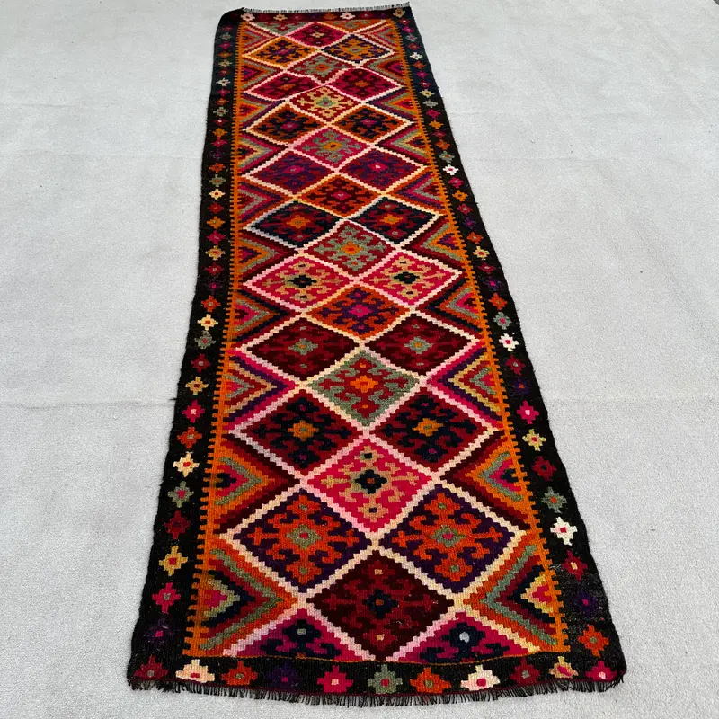 Elegant Red Oriental Rug, 2,7x9,6 ft with Pink Accents
