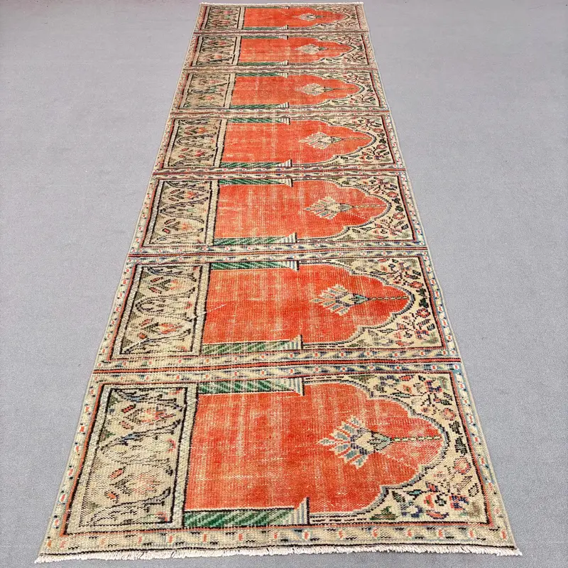 Orange & Green Floral Rug, 112x375 cm Vibrant Decor