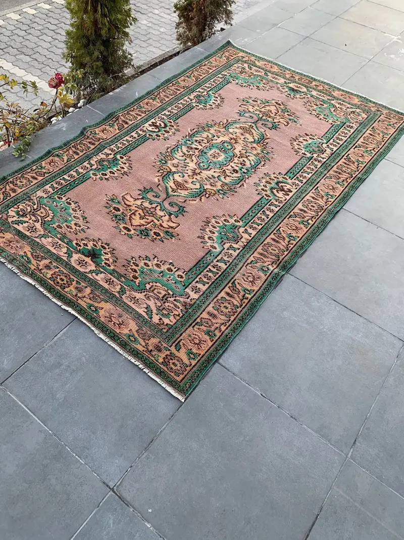 Elegant Green Oriental Rug, 5,2x8,7 ft Chic Home Decor