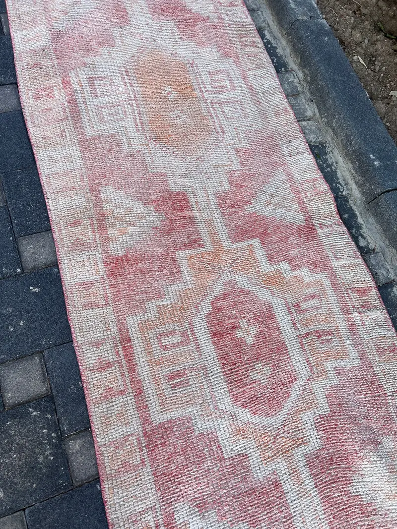 Oriental Pink & Orange Rug, 2,8x12,1 ft Chic Decor