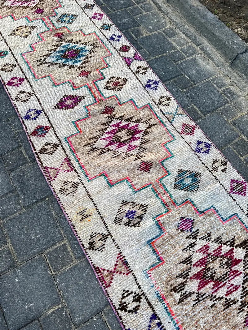 Elegant Beige Oriental Rug, 2.7x11.6 ft Beige & Brown