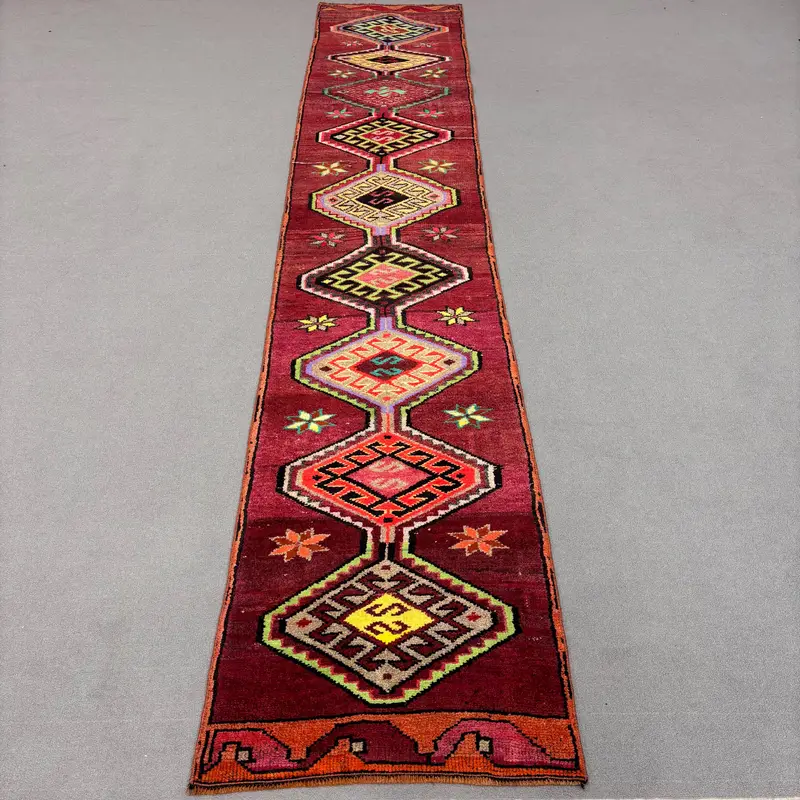 Purple, Green Southwestern Rug, 2.4x12.6 ft Chic Decor
