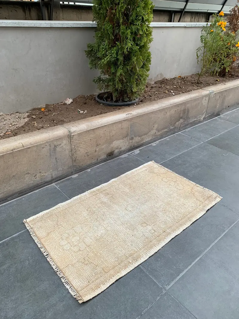 Elegant Beige Oriental Rug, 1.7x3 ft with Orange Accents