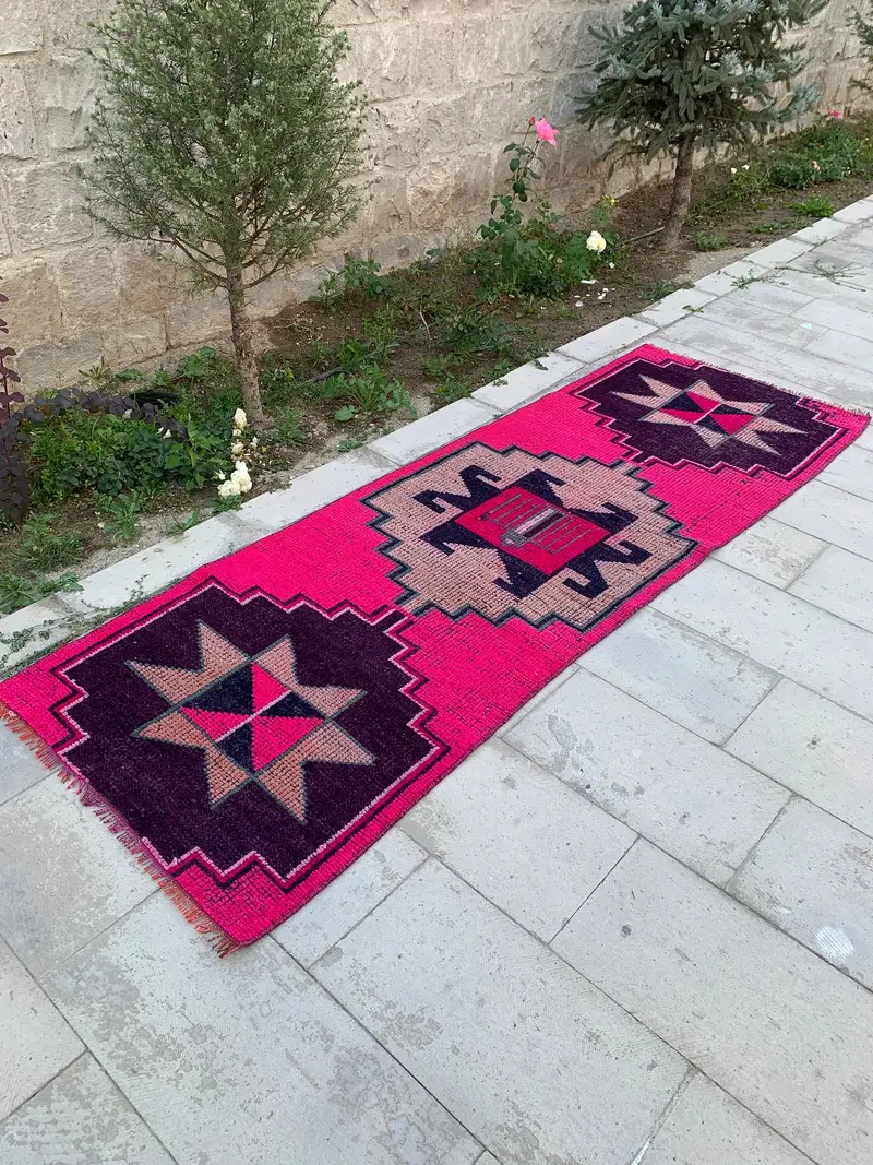 Elegant Pink Oriental Rug, 2,12x9 ft Purple Accents
