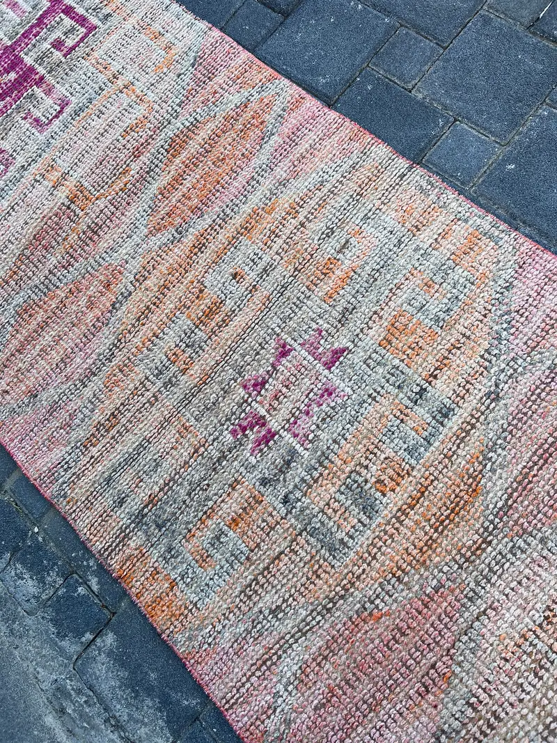 Vibrant Orange Rug, 2,9x10,6 ft Floral and Paisley Design