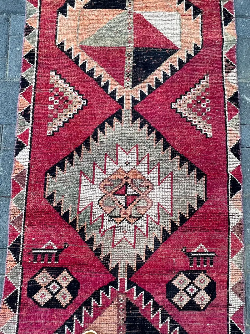 Elegant Red Oriental Rug, 3,1x10,11 ft Chic Decor
