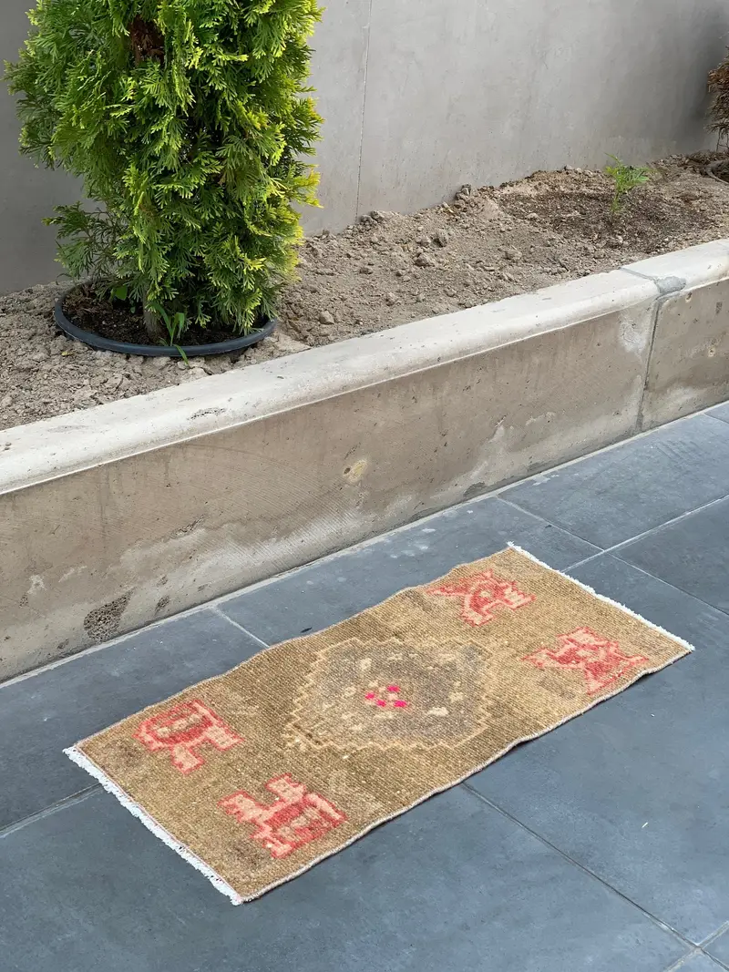 1,1x2,6 ft Beige Oriental Rug, Elegant Red Accents