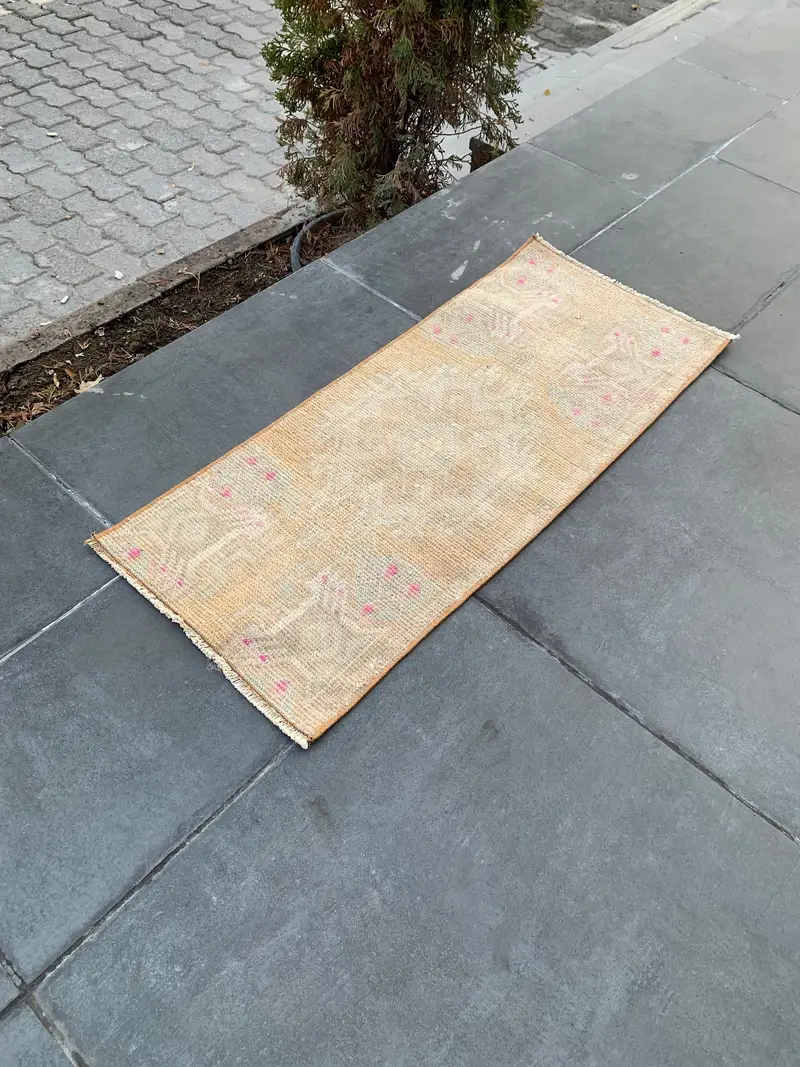 Orange Beige Floral Rug, 1,3x3,1 ft Chic Decor
