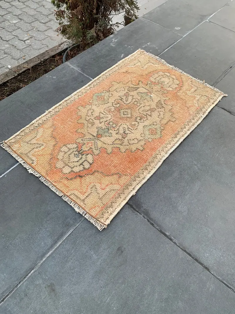 Beige & Orange Rug, 1.5x2.6 ft Geometric Floral Design