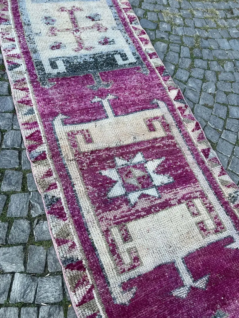 Purple Oriental Rug, 2,1x12,2 ft Elegant Decor