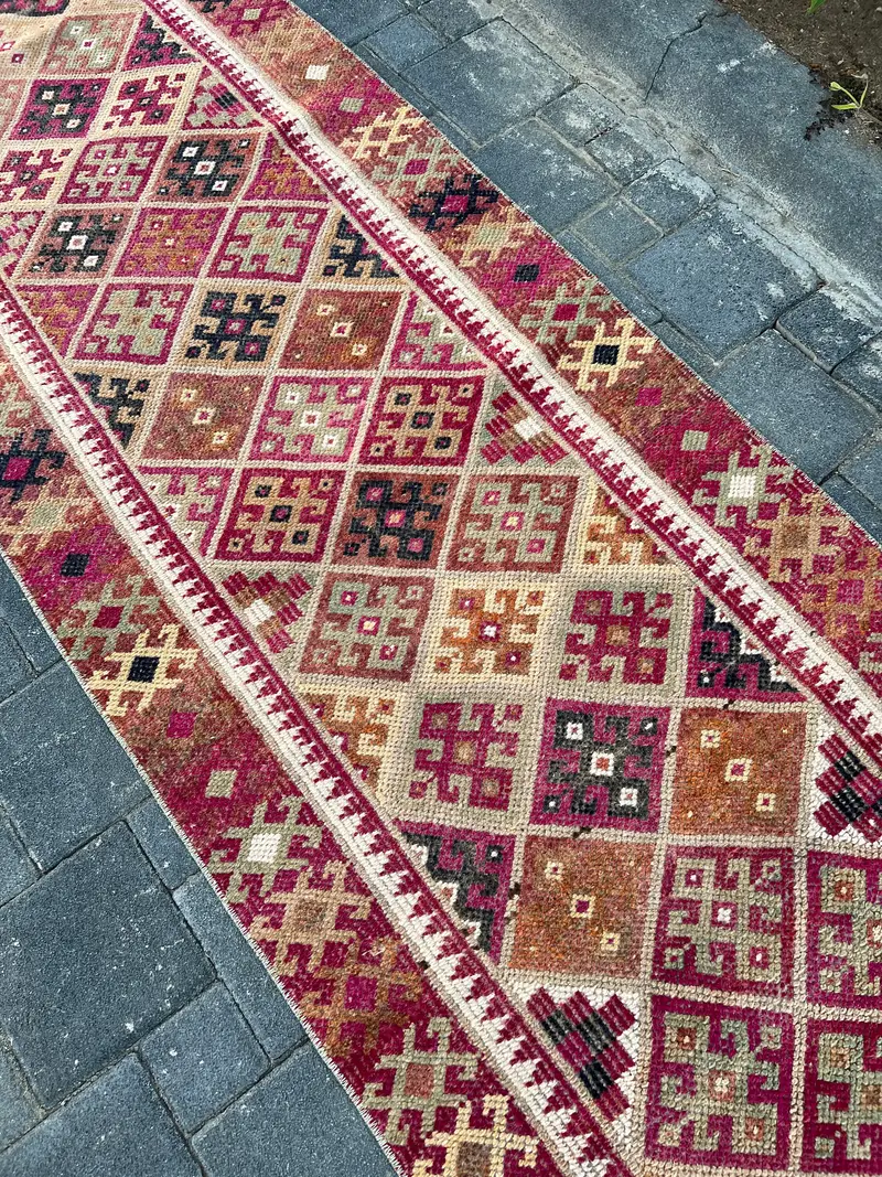 Red and Black Rug, 2,8x10,2 ft Floral and Geometric