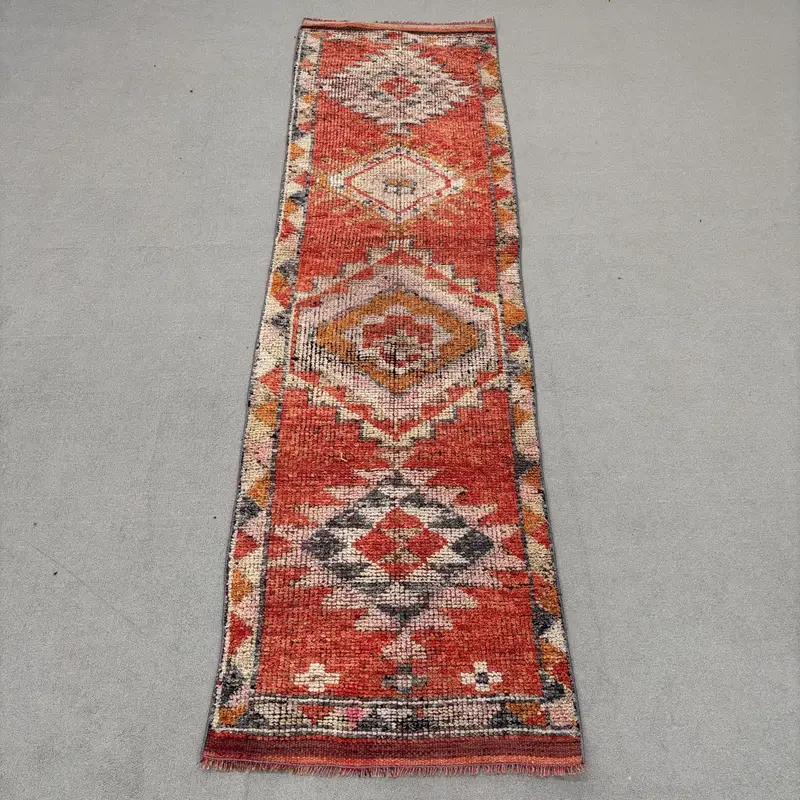 Red, Beige Polka Dot Rug, 2,7x9,8 ft Chic Decor