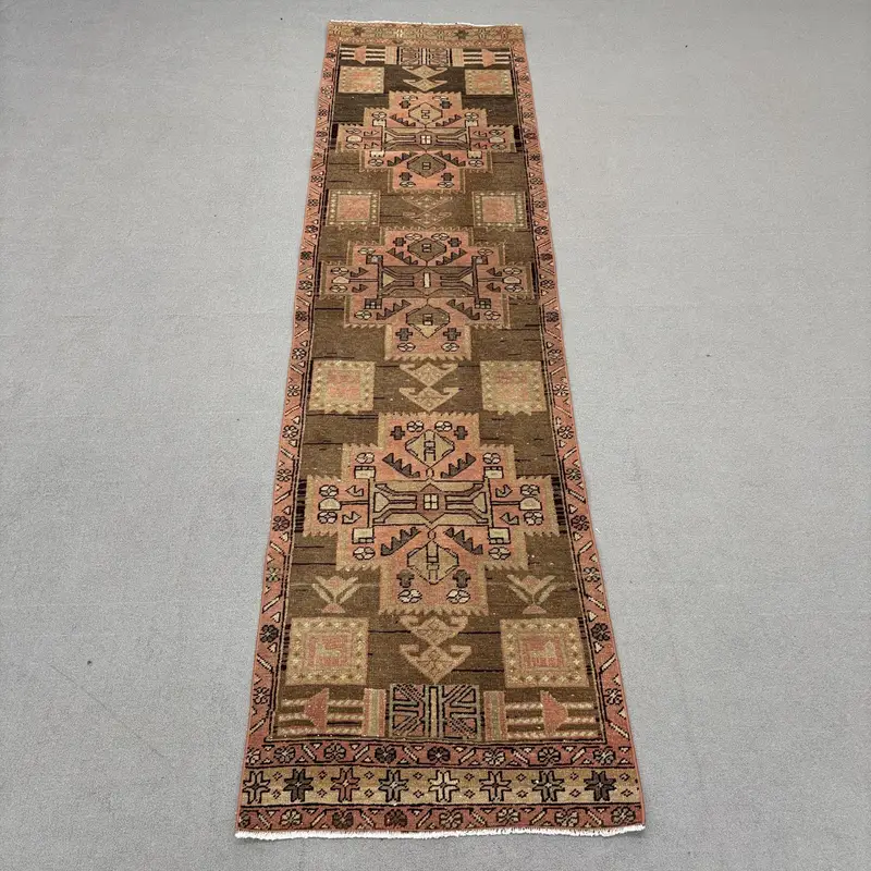 Elegant Brown Oriental Rug, 2.6x10.4 ft with Pink Accents