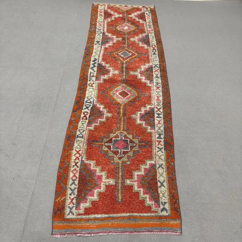 Red & White Rug, 3,2x12,2 ft Botanical Design