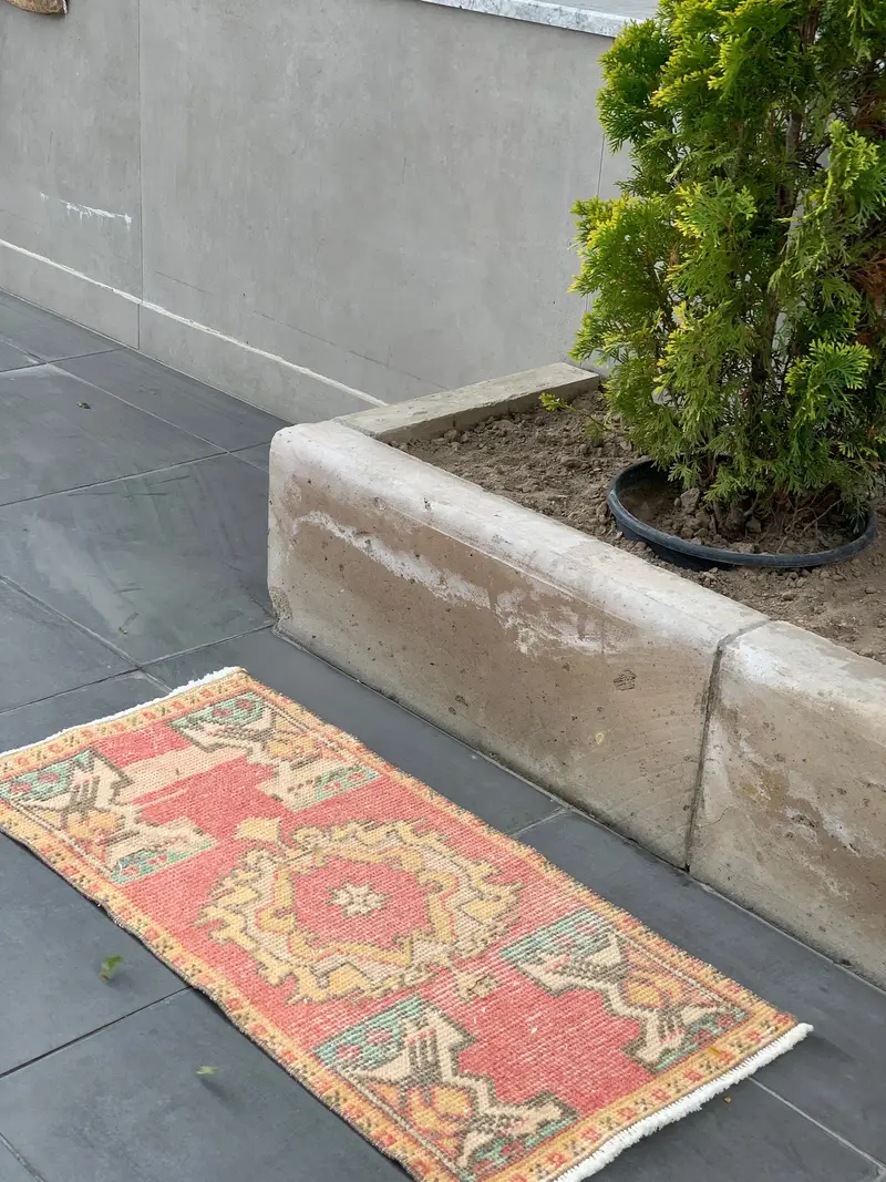 Red & Orange Rug, 1.5x3 ft Geometric Floral Design