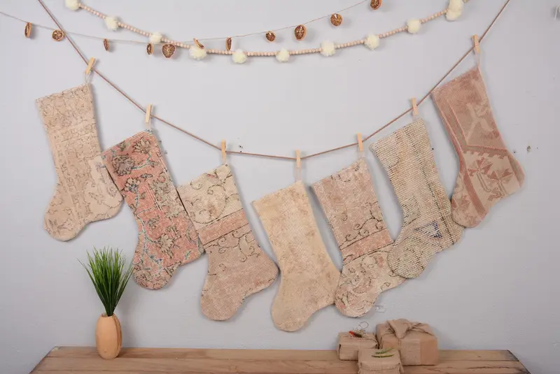 Festive Christmas Ornaments Pattern, 7 Inch Kilim Christmas Stocking
