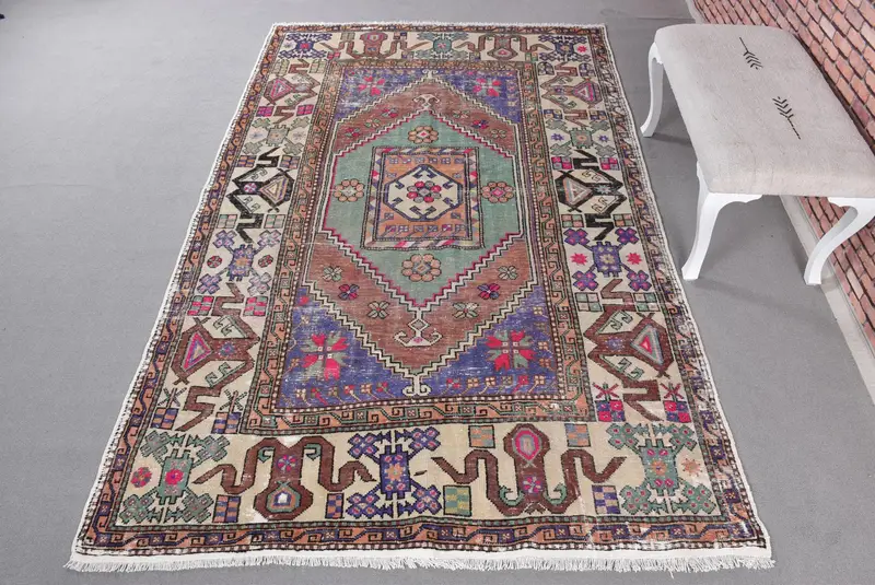 Elegant Beige & Green Ombré Rug, 5,7x9,1 ft Chic Decor
