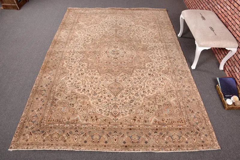 Brown Floral Rug, 6,8x9,9 ft Beige Paisley Design