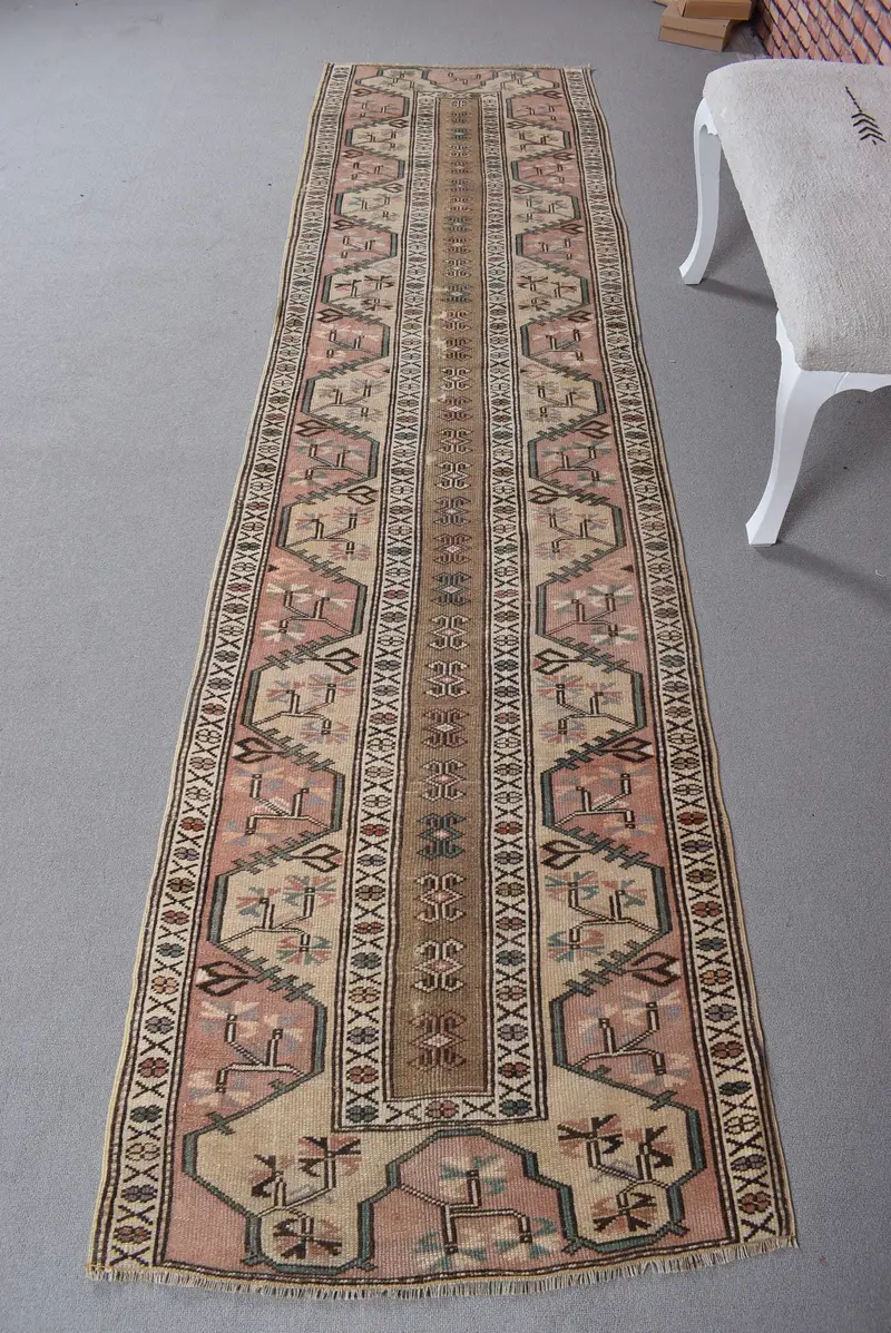 Elegant Pink & Beige Rug, 2.7x10 ft Floral & Geometric