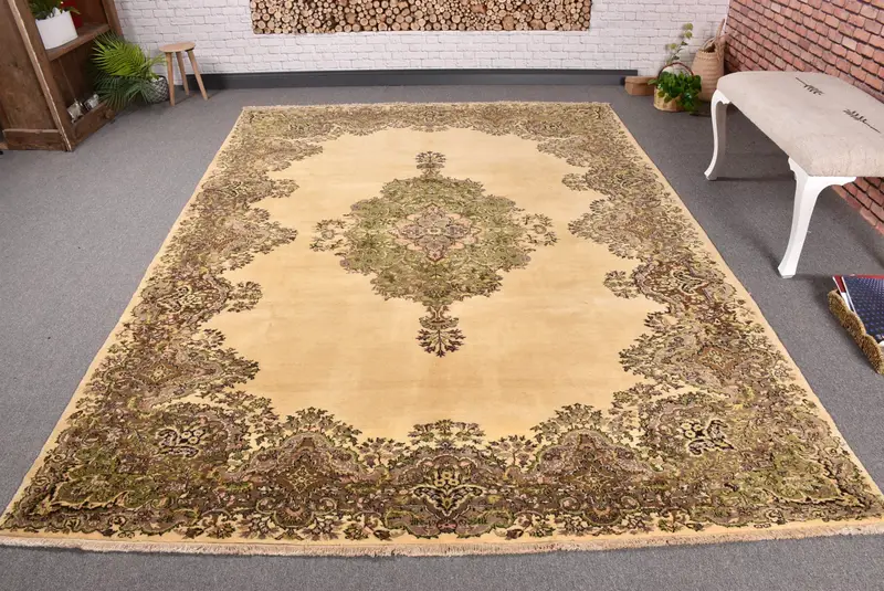 Elegant Beige Ikat Rug, 6,7x9,4 ft Chic Decor