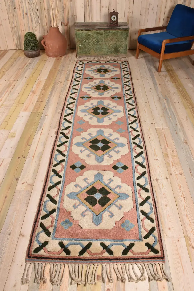 Blue & Beige Striped Rug, 3x11.1 ft Elegant Design
