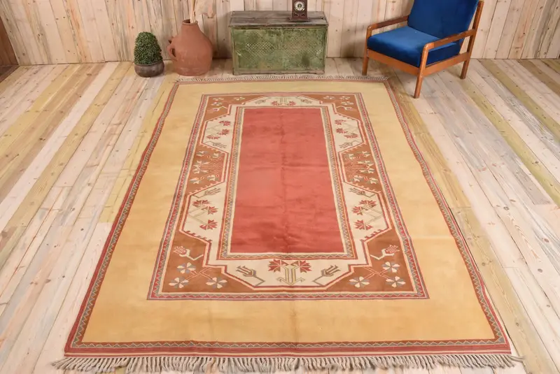 Vibrant Yellow & Red Rug, 6,6x9,6 ft Botanical Design