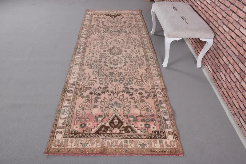 Elegant Orange Persian Rug, 3,3x9,4 ft with Brown Accents