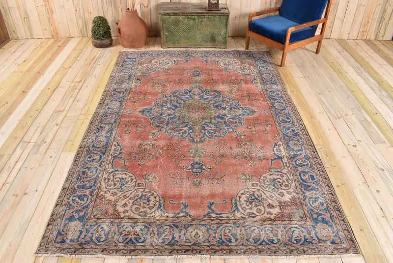 Red & Blue Geometric Rug, 6,6x9,9 ft Chic Decor