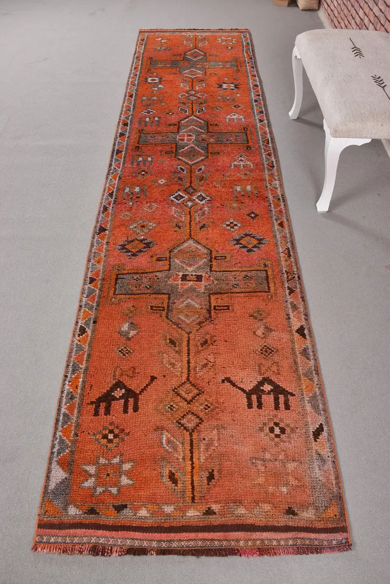 Red Ikat Rug, 2,8x11,5 ft Elegant Gray Accent