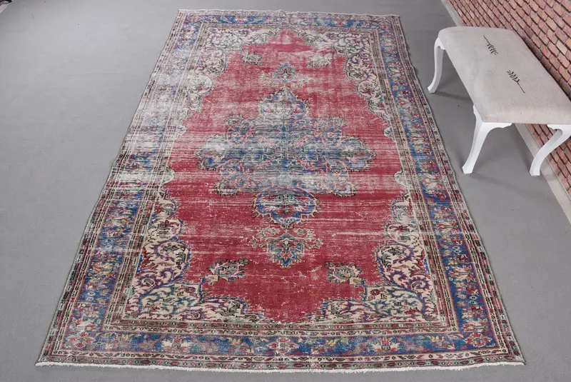 Red Moroccan Rug, 6,5x10,2 ft with Blue Accents