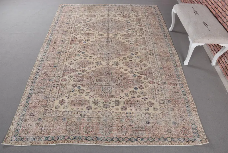 Elegant Beige & Orange Rug, 6.5x9.4 ft Botanical Design