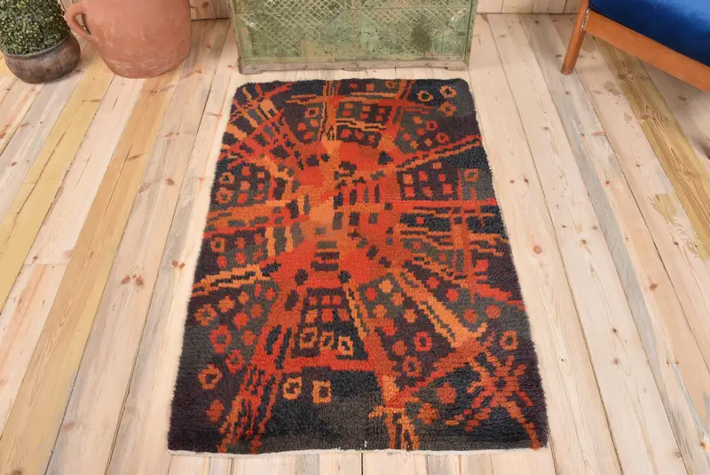 Red Camouflage Rug, 2.9x4.6 ft with Blue Accents